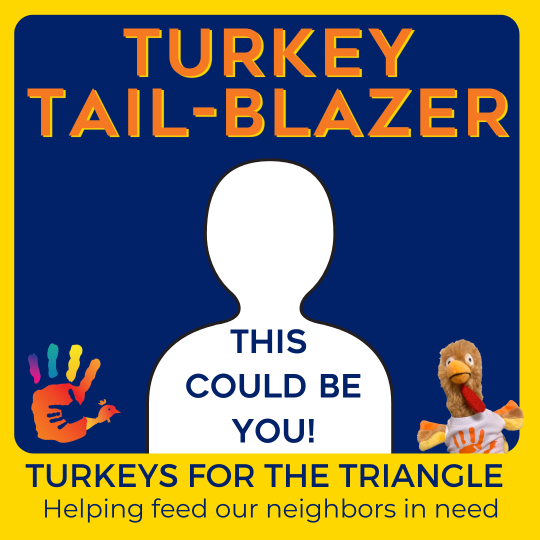 Our fundraising goal for this year’s race is to raise $60,000 to cover costs to distribute more than 5,000 turkeys to help feed over 60,000 in need as well as food banks, churches, and military bases across Central NC. All proceeds go directly into purchasing turkeys for the community.